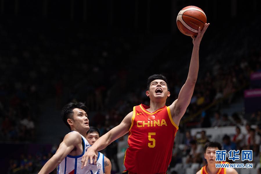 8月30日,中国队球员方硕(右)在比赛中上篮。 当日,在第18届亚运会男子篮球半决赛中,中国队以86比63胜中国台北队,晋级决赛。 新华社记者张金加摄