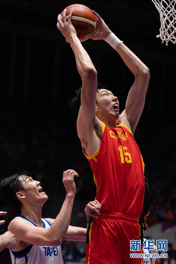 8月30日,中国队球员周琦(右)在比赛中进攻。 当日,在第18届亚运会男子篮球半决赛中,中国队以86比63胜中国台北队,晋级决赛。 新华社记者张金加摄