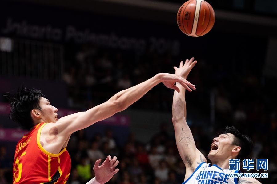 8月30日,中国队球员周琦(左)在比赛中。 当日,第18届亚运会男子篮球半决赛,中国队对阵中国台北队。 新华社记者张金加摄