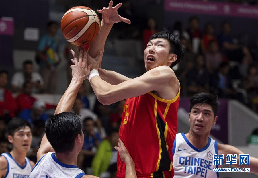 8月30日,中国队球员周琦在比赛中。 当日,第18届亚运会男子篮球半决赛,中国队对阵中国台北队。 新华社记者张金加摄