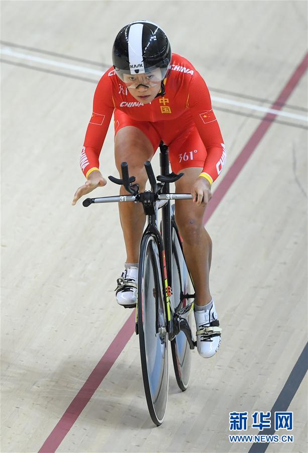 8月30日,中国选手王红在比赛中。 当日,在第18届亚运会场地自行车女子3000米个人追逐赛中,中国选手王红获得亚军。 新华社记者杜宇摄