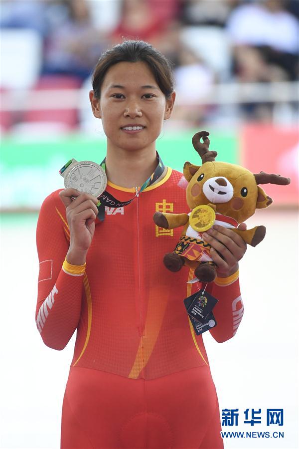 8月30日,中国选手王红在颁奖仪式上。 当日,在第18届亚运会场地自行车女子3000米个人追逐赛中,中国选手王红获得亚军。 新华社记者杜宇摄