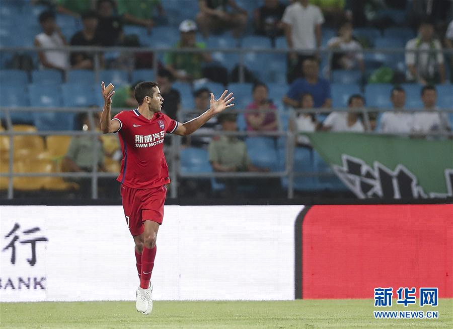 8月30日,重庆斯威队球员卡尔德克在比赛中进球被取消后质疑裁判判罚。 当日,在2018赛季中超联赛第21轮比赛中,北京中赫国安队主场以2比1战胜重庆斯威队。 新华社记者曹灿摄