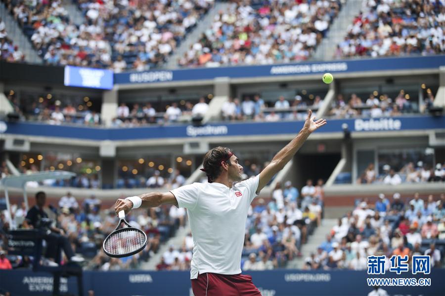 8月30日,费德勒在比赛中发球。 新华社记者王迎摄