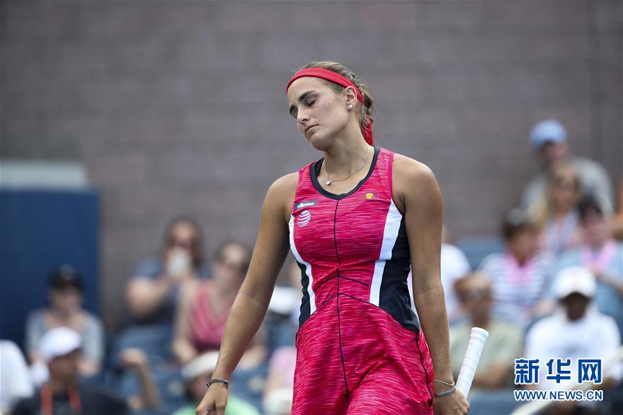 8月30日,普格在比赛中失误后表情无奈。 新华社记者王迎摄