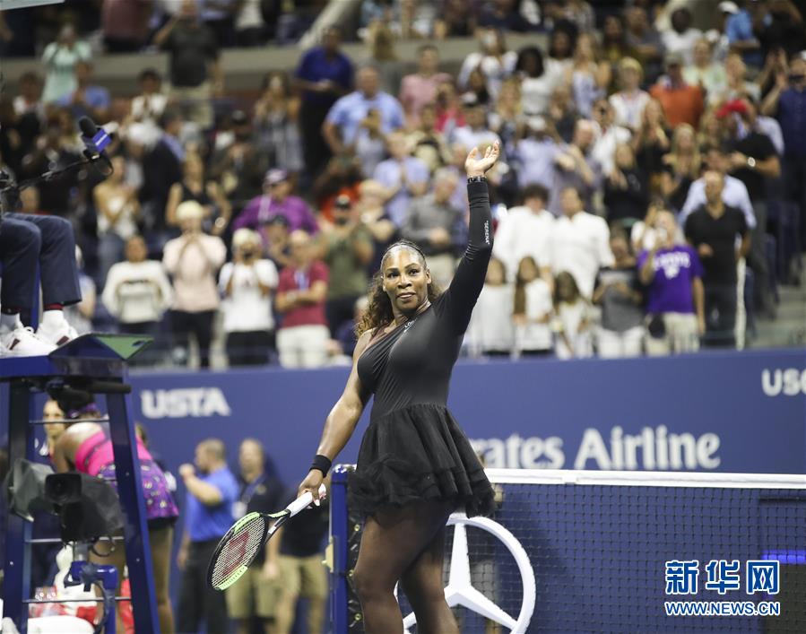 8月31日,塞雷娜·威廉姆斯获胜后向观众致意。 当日,在2018美国网球公开赛女单第三轮比赛中,美国选手塞雷娜·威廉姆斯以2比0战胜姐姐维纳斯·威廉姆斯,晋级十六强。 新华社记者王迎摄