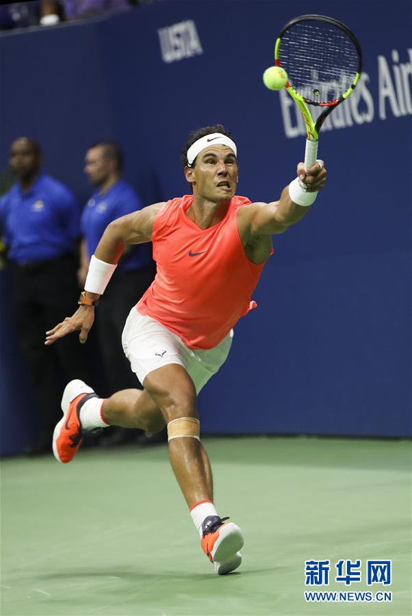 8月31日,纳达尔在比赛中回球。 当日,在2018美国网球公开赛男单第三轮比赛中,西班牙选手纳达尔以3比1战胜俄罗斯选手卡查诺夫,晋级十六强。 新华社记者王迎摄