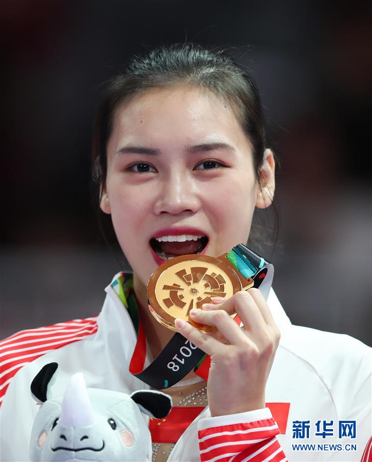 夺得金牌自然要庆祝,最受冠军们偏爱的庆祝方式当属“咬”金牌。不论是个人项目,双人项目还是团体项目,领奖台上咬一咬金牌才算开心圆满。然而,庆祝有风险,“咬”牌需谨慎。2010年2月14日,德国硬汉默勒在咬奖牌庆祝时,就因为太开心、太用力而崩断了牙齿⋯⋯ 这是蹦床女子个人冠军刘灵玲在颁奖仪式上“咬”牌庆祝(8月30日摄)。 新华社记者丁汀摄