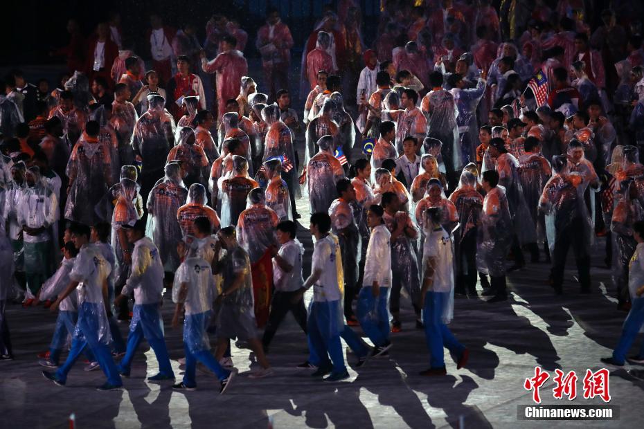 9月2日,第18届亚运会闭幕式在印度尼西亚雅加达举行。图为运动员们步入闭幕式现场。 中新社记者 刘关关 摄
