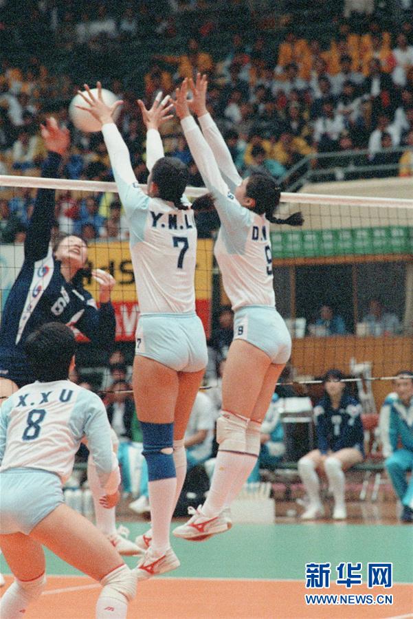 ↑中国女排在第18届亚运会中七战七胜挺进决赛,并在决赛中以3比0战胜泰国队夺冠。这是中国女排时隔八年后再次获得亚运会金牌。同时,这也是中国女排历史上第八次站在亚运会冠军领奖台上。 这是1990年10月5日,在第11届亚运会女排决赛中,中国队球员在比赛中拦网。最终,中国队以3比1战胜韩国队,获得冠军。 新华社记者王景英摄