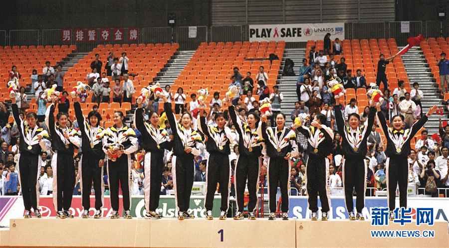↑中国女排在第18届亚运会中七战七胜挺进决赛,并在决赛中以3比0战胜泰国队夺冠。这是中国女排时隔八年后再次获得亚运会金牌。同时,这也是中国女排历史上第八次站在亚运会冠军领奖台上。 这是1998年12月15日,在第13届亚运会女排决赛中,中国队以3比1战胜韩国队,登上冠军领奖台。 新华社记者宋晓刚摄