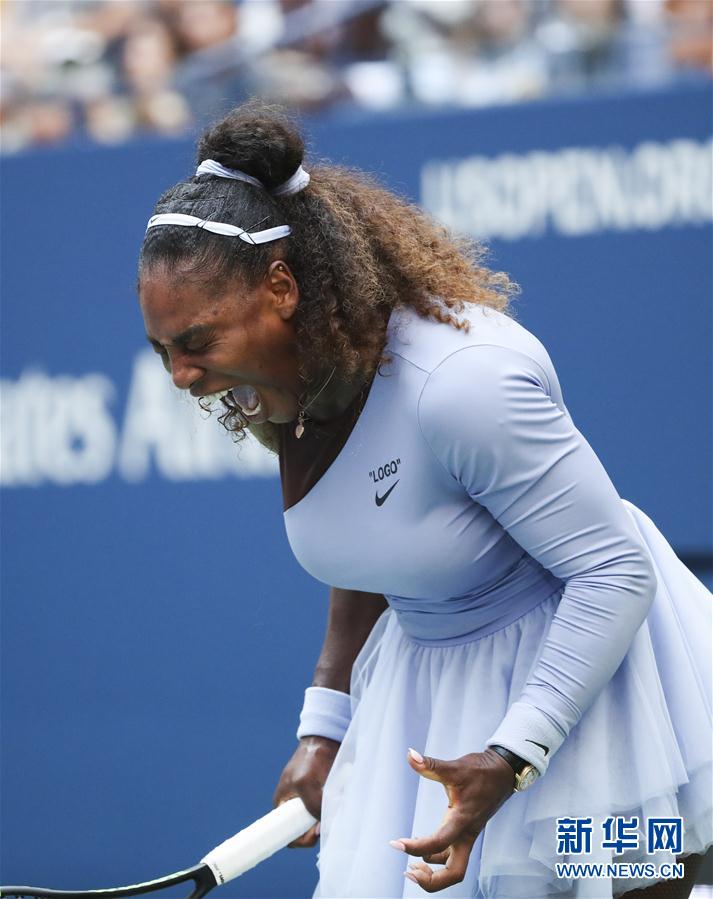 9月2日,小威廉姆斯在比赛中庆祝得分。 当日,在2018美国网球公开赛女单第四轮比赛中,美国选手塞雷娜·威廉姆斯以2比1战胜爱沙尼亚选手卡娅·卡内皮,晋级八强。 新华社记者王迎摄