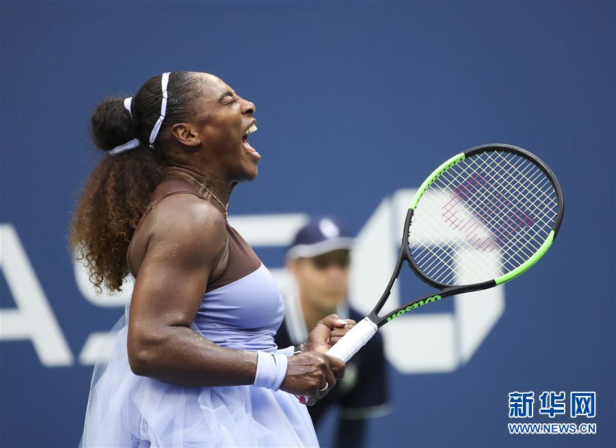 9月2日,小威廉姆斯在比赛中庆祝得分。 新华社记者王迎摄