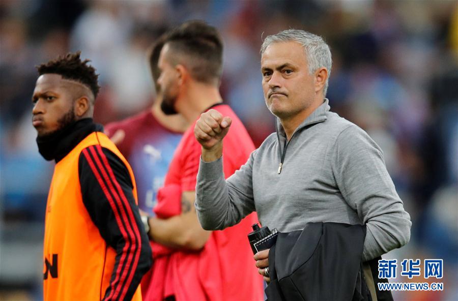 9月2日,曼联队主教练穆里尼奥(右)庆祝胜利。 新华社/路透