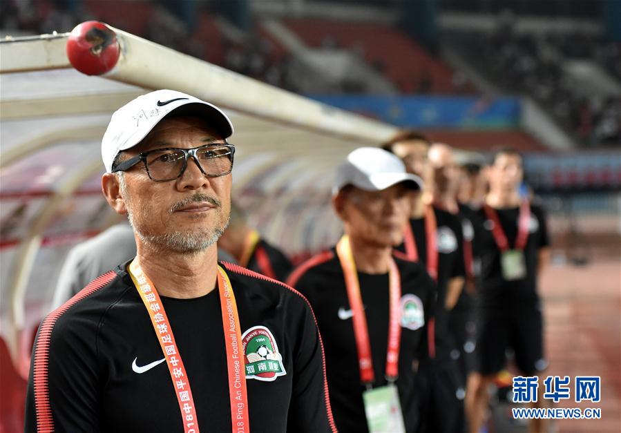 9月2日,河南建业队球员主教练张外龙(左)比赛前。 新华社记者李嘉南摄