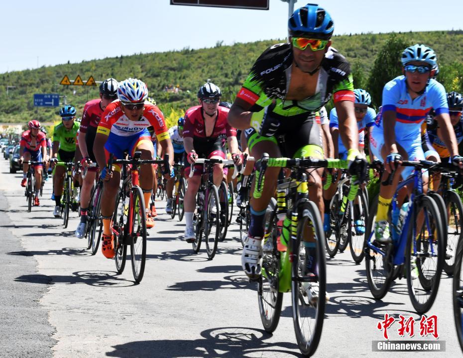 9月3日,2018“邢台大峡谷杯”环邢台国际公路自行车赛开赛,来自16个国家和地区的24支队伍参赛。图为选手们在比赛中骑行。中新社记者 翟羽佳 摄