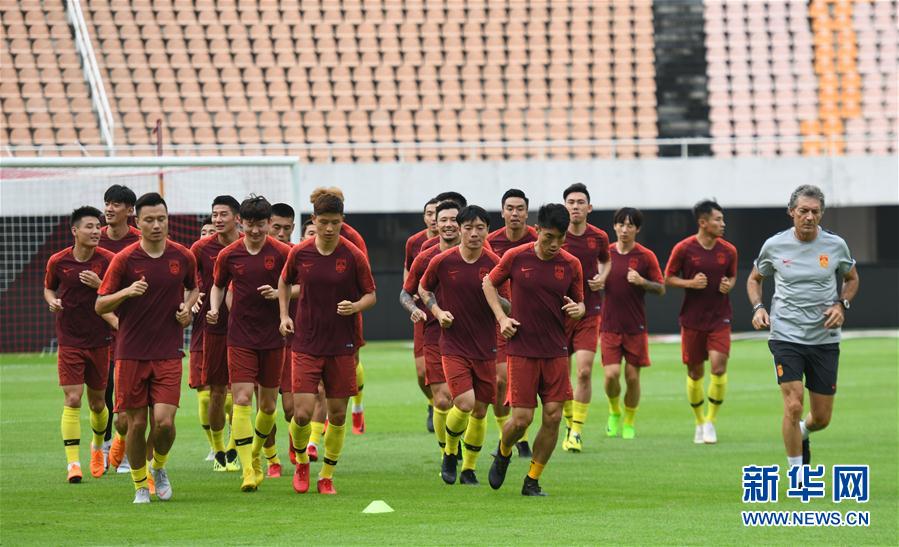 9月3日,中国男足队员在广州天河体育中心集训。新华社记者邓华摄
