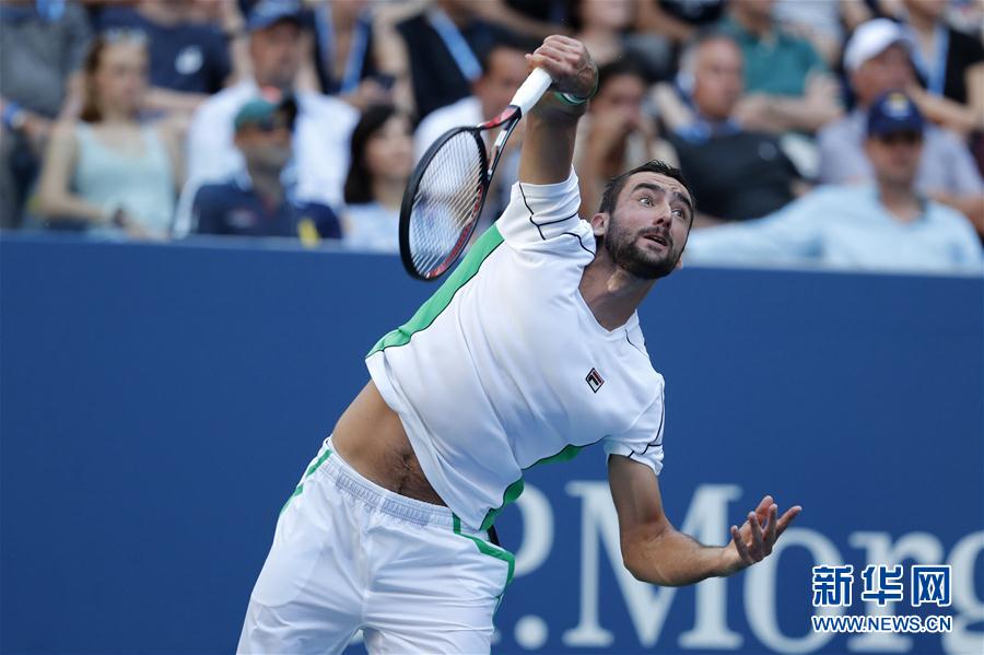 9月3日,西里奇在比赛中发球。 新华社记者李木子摄