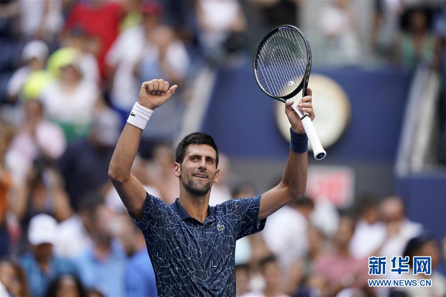 9月3日,焦科维奇获胜后庆祝。 当日,在2018美国网球公开赛男单第四轮比赛中,塞尔维亚选手焦科维奇以3比0战胜葡萄牙选手索萨,晋级八强。 新华社记者李木子摄