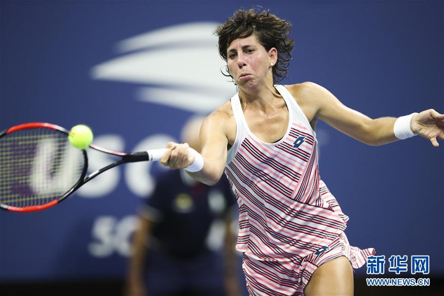 9月3日,纳瓦罗在比赛中回球。新华社记者王迎摄