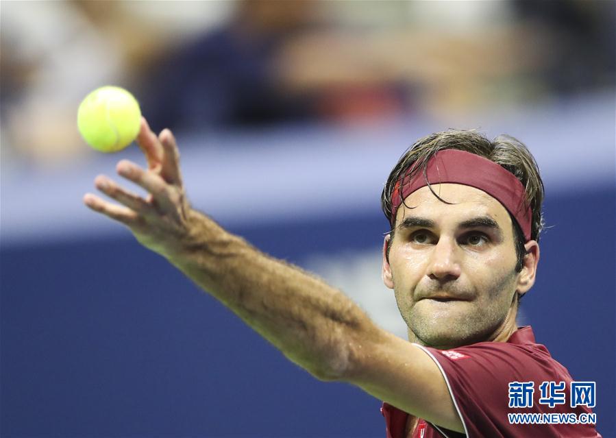 9月3日,费德勒在比赛中发球。当日,在2018美国网球公开赛男单第四轮比赛中,瑞士选手费德勒以1比3不敌澳大利亚选手约翰·米尔曼,无缘八强。 新华社记者王迎摄