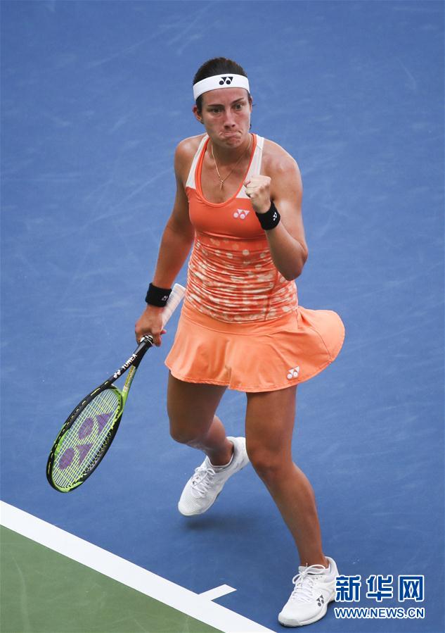 9月4日,希瓦妥娃在比赛中庆祝得分。 当日,在2018美国网球公开赛女单四分之一决赛中,拉脱维亚选手希瓦妥娃以2比0战胜美国选手斯蒂芬斯,晋级四强。 新华社记者王迎摄