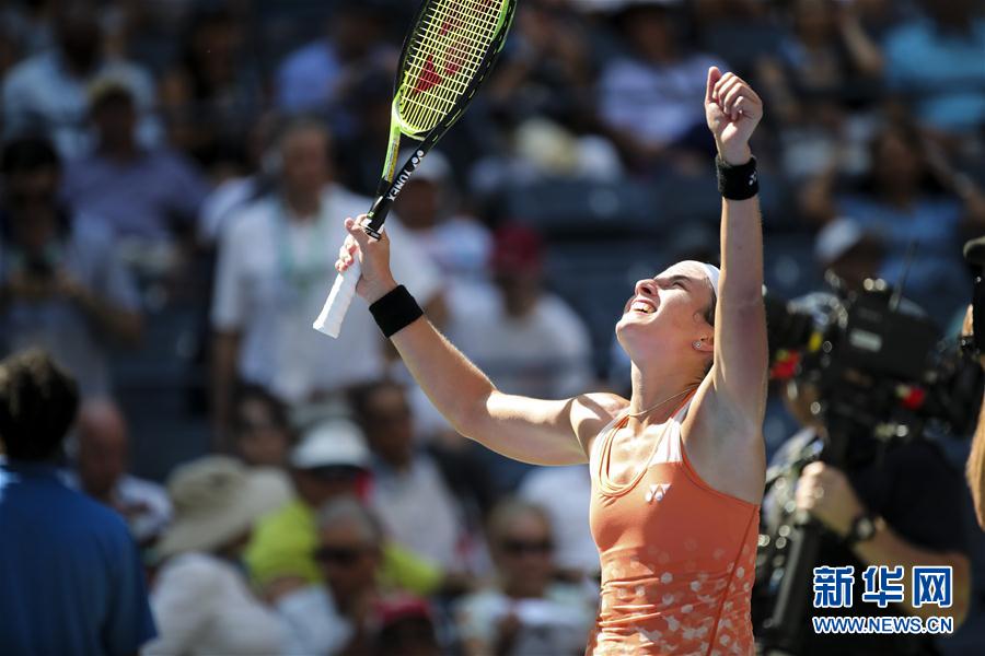 9月4日,希瓦妥娃在获胜后庆祝。 当日,在2018美国网球公开赛女单四分之一决赛中,拉脱维亚选手希瓦妥娃以2比0战胜美国选手斯蒂芬斯,晋级四强。 新华社记者王迎摄