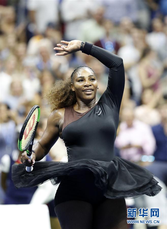 9月4日,塞雷纳·威廉姆斯在获胜后庆祝。 当日,在2018美国网球公开赛女单四分之一比赛中,美国选手塞雷纳·威廉姆斯以2比0战胜捷克选手普利斯科娃,晋级四强。 新华社记者李木子摄