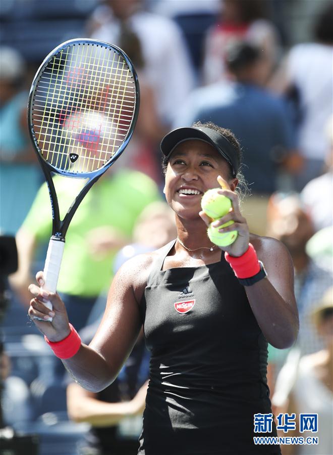 9月5日,大阪直美在赛后与观众互动。 新华社记者王迎摄