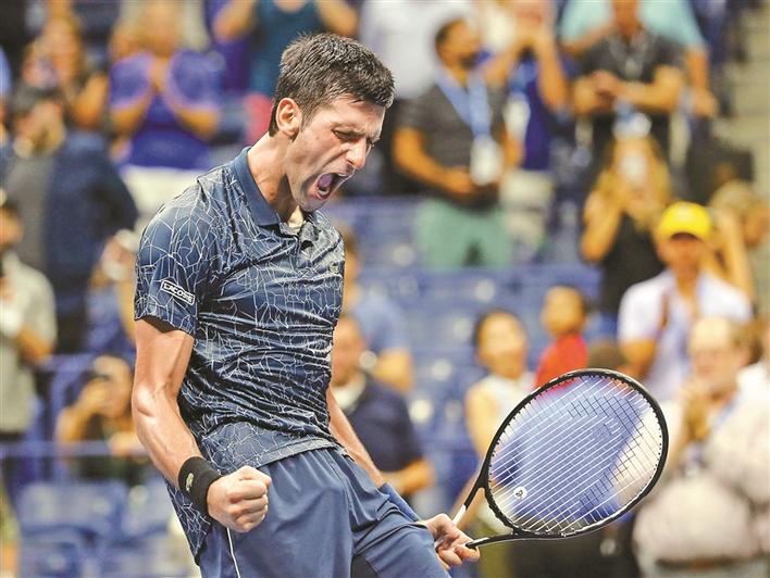 塞尔维亚天王德约科维奇(左)将与日本选手锦织圭(右)争夺一个决赛权。新华社发