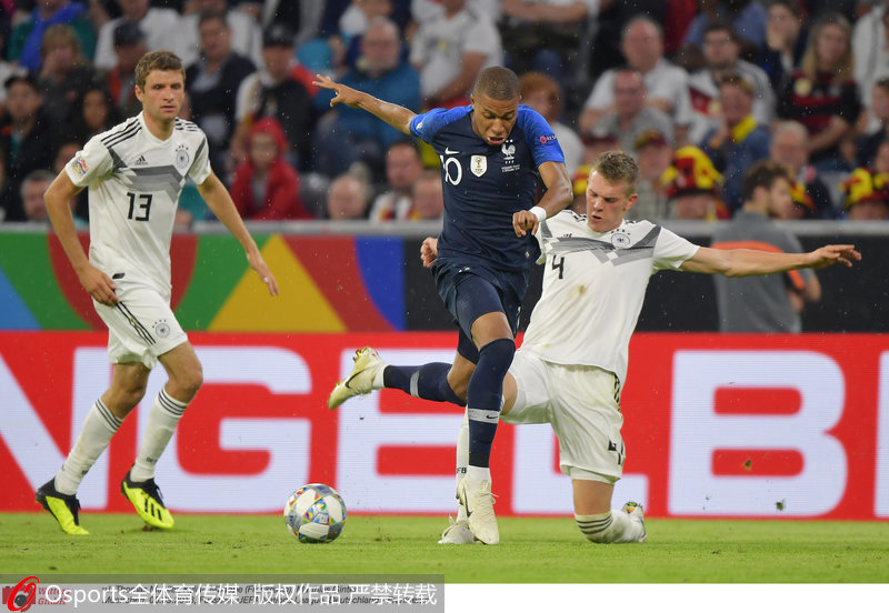 人民网北京9月7日电(李乃妍)北京时间今天凌晨2:45,全新的欧洲国家联赛正式拉开战幕。A级A组中,在慕尼黑安联球场,2014年世界杯冠军德国队主场迎战2018年世界杯冠军法国队,上半场,两队互交白卷,比分暂为0-0。下半场,阿雷奥拉多次作出世界级扑救,最终,两队0-0握手言和。小组赛中各取1分。