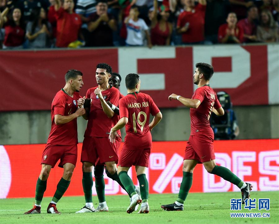 9月6日,葡萄牙队球员佩佩(左二)头球破门得分后与队友庆祝。 当日,在葡萄牙法鲁市阿尔加夫球场举行的一场国际足球友谊赛中,葡萄牙队以1比1战平克罗地亚队。 新华社记者张立云摄