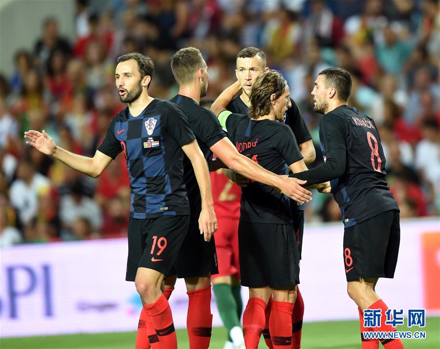 9月6日,克罗地亚队球员佩里西奇(右三)进球后与队友庆祝。 新华社记者张立云摄