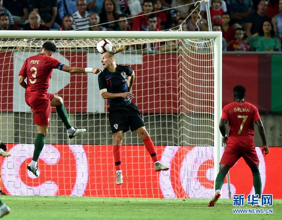9月6日,葡萄牙队球员佩佩(左)头球破门得分。 新华社记者张立云摄