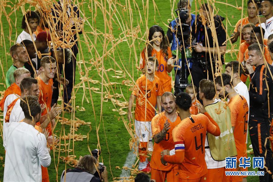 9月6日,斯内德(前左)在比赛后与队友握手致意。 新华社/美联
