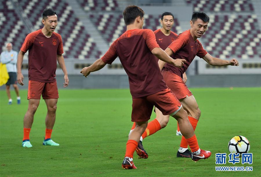 国足与卡塔尔热身赛踩场训练 冯潇霆、张稀哲露牙憨笑