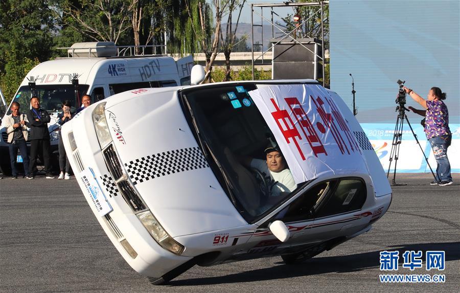 ↑9月7日,一名车手在开幕式上进行特技驾驶表演。 当日,为期4天的2018中国忻州旅游文化嘉年华·越野拉力赛在山西忻州发车,共有来自全国各地的约200辆赛车参与角逐。 新华社记者龚兵摄