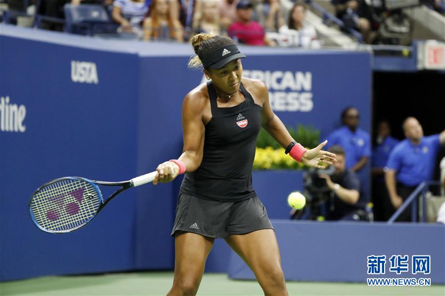 ↑9月8日,大阪直美在比赛中回球。 当日,在2018美国网球公开赛女单决赛中,日本选手大阪直美以2比0战胜美国选手塞雷娜·威廉姆斯,夺得冠军。 新华社记者李木子摄