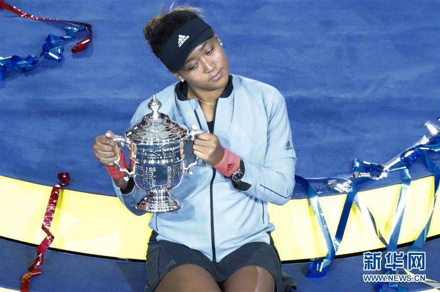 ↑9月8日,大阪直美在颁奖仪式上手捧冠军奖杯。 新华社记者李木子摄