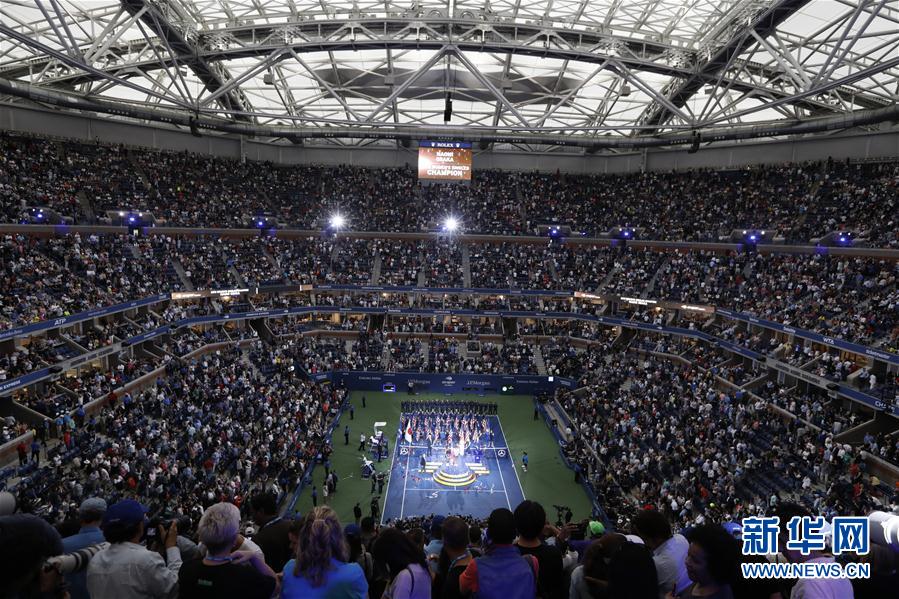 ↑9月8日,在2018美国网球公开赛女单决赛中,日本选手大阪直美以2比0战胜美国选手塞雷娜·威廉姆斯,夺得冠军。 这是9月8日在美国纽约阿瑟·阿什体育场拍摄的2018美网女子单打决赛颁奖现场。 新华社记者李木子摄