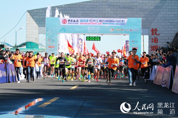 人民网牡丹江9月9日电(韩婷澎)跑林海雪原牡丹江,享火山熔岩镜泊湖。9月9日,中国银行2018牡丹江镜泊湖国际马拉松赛暨“健康中国”系列赛在镜泊湖风景名胜区活力开跑。本届赛事共设立全程马拉松(42.195公里)、半程马拉松(21.0975公里)、迷你马拉松(5公里)及欢乐跑(2公里)等组别,近万人共享马拉松狂欢,年龄最大81岁,最小7岁。