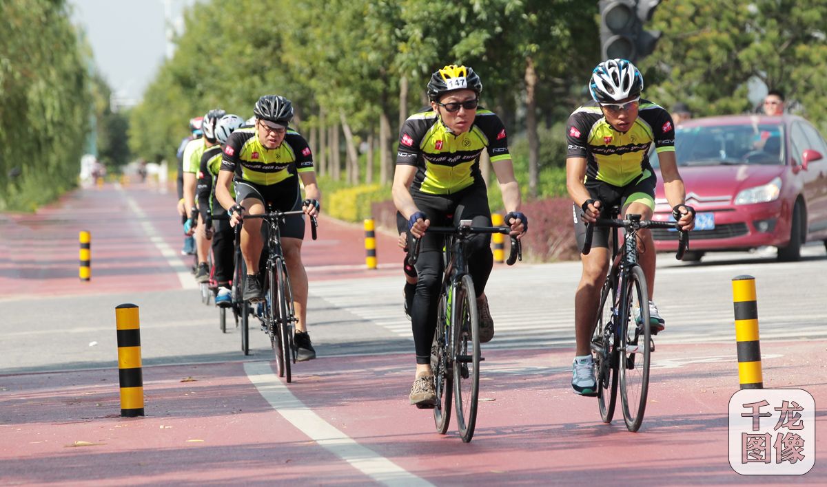 第十一届北京-北戴河公路自行车拉力赛9月8日在北京市通州区北关发枪,选手们经过近8个小时的长途骑行,最终李高明用时7小时20分、王国利用时7小时28分40秒、王艳春用时7小时46分48秒分获男子青年组、中年组和女子组冠军。图为全体队员在骑行中。千龙网发 崇惠友 张铁环 党伟光供图