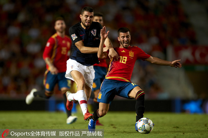 人民网北京9月12日电 北京时间今天凌晨2:45,欧洲国家联赛继续进行,西班牙坐镇主场迎战克罗地亚。本场比赛阿森西奥表现抢眼,上演助攻帽子戏法的他进球后又造卡里尼奇自摆乌龙,萨乌尔、罗德里戈、拉莫斯和伊斯科进球。最终,西班牙6-0大胜克罗地亚,取得两连胜,克罗地亚队则遭到队史最大比分失利。