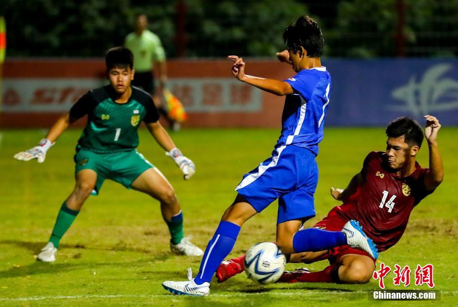 9月11日晚,2018年“武汉杯”国际少年足球锦标赛在武汉落下帷幕。决赛中泰国U14队加时赛金球绝杀日本U14队以3:2获得冠军,中国U14队1:2不敌马来西亚U14队获得第四名。本次国际少年足球邀请赛有来自中国、日本、韩国、泰国、越南、马来西亚、阿联酋、乌兹别克斯坦8个国家的U14队参赛。图为泰国队球员(红衣)门前封堵日本球员进攻。中新社记者 张畅 摄