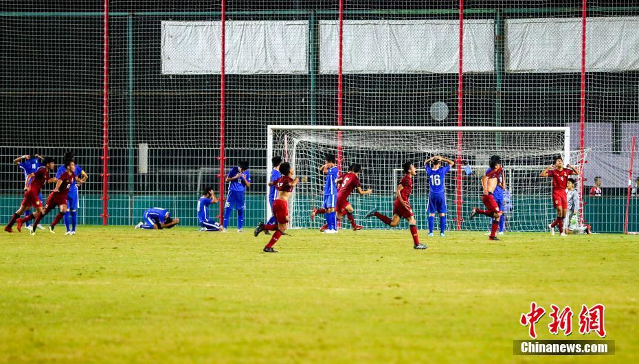 9月11日晚,2018年“武汉杯”国际少年足球锦标赛在武汉落下帷幕。决赛中泰国U14队加时赛金球绝杀日本U14队以3:2获得冠军,中国U14队1:2不敌马来西亚U14队获得第四名。本次国际少年足球邀请赛有来自中国、日本、韩国、泰国、越南、马来西亚、阿联酋、乌兹别克斯坦8个国家的U14队参赛。图为泰国队(红衣)加时赛金球绝杀日本队。中新社记者 张畅 摄