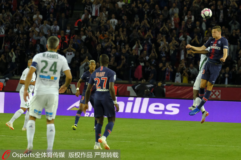 人民网北京9月15日电(管若寒)北京时间9月15日,2018-2019赛季法甲联赛第5轮巴黎圣日耳曼迎战圣埃蒂安,凭借德拉克斯勒、卡瓦尼、迪马利亚、迪亚比的进球,巴黎4-0大胜圣埃蒂安,豪取联赛5连胜。