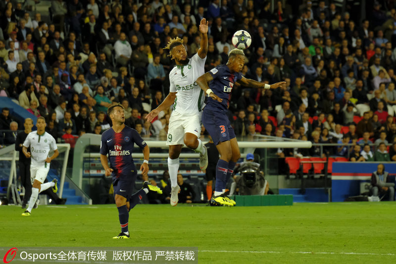 人民网北京9月15日电(管若寒)北京时间9月15日,2018-2019赛季法甲联赛第5轮巴黎圣日耳曼迎战圣埃蒂安,凭借德拉克斯勒、卡瓦尼、迪马利亚、迪亚比的进球,巴黎4-0大胜圣埃蒂安,豪取联赛5连胜。