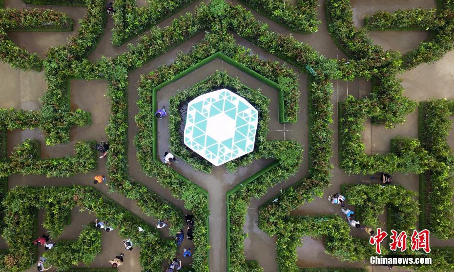 江苏扬州一体育公园近千平方“植物迷宫”开放