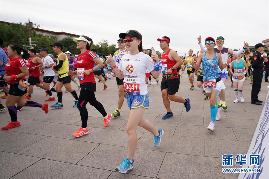当日,2018北京马拉松赛在北京天安门广场开跑。 新华社记者鞠焕宗摄