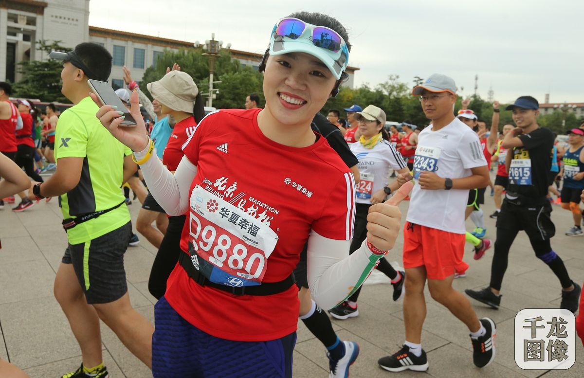 9月16日,2018华夏幸福北京马拉松(以下简称“北马”)在天安门广场顺利起跑,来自40多个国家和地区的约3万名长跑爱好者纷纷迈开脚步,场面蔚为壮观。图为天安门广场起跑精彩瞬间。千龙网记者 戚连民摄